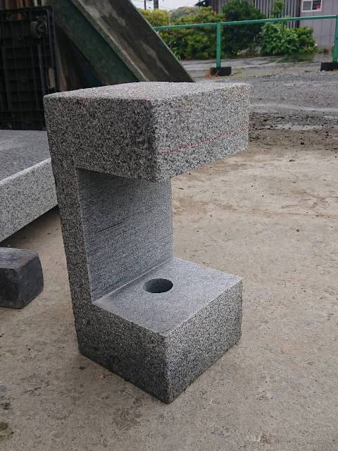 四角い石を全面ビシャンという道具で叩き目をつけて、切削機にて開口部を作ります。
